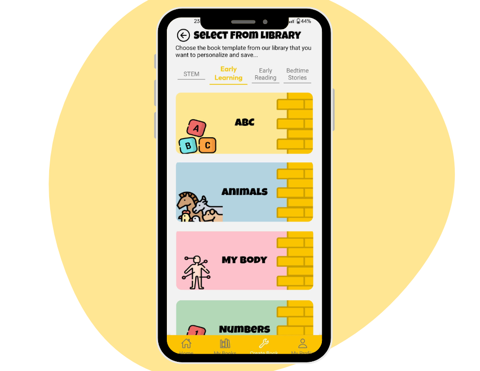 Pick a book template from our every growing library, from learning to speak for babies to learning to read for growing kids to bedtime stories for the whole family.